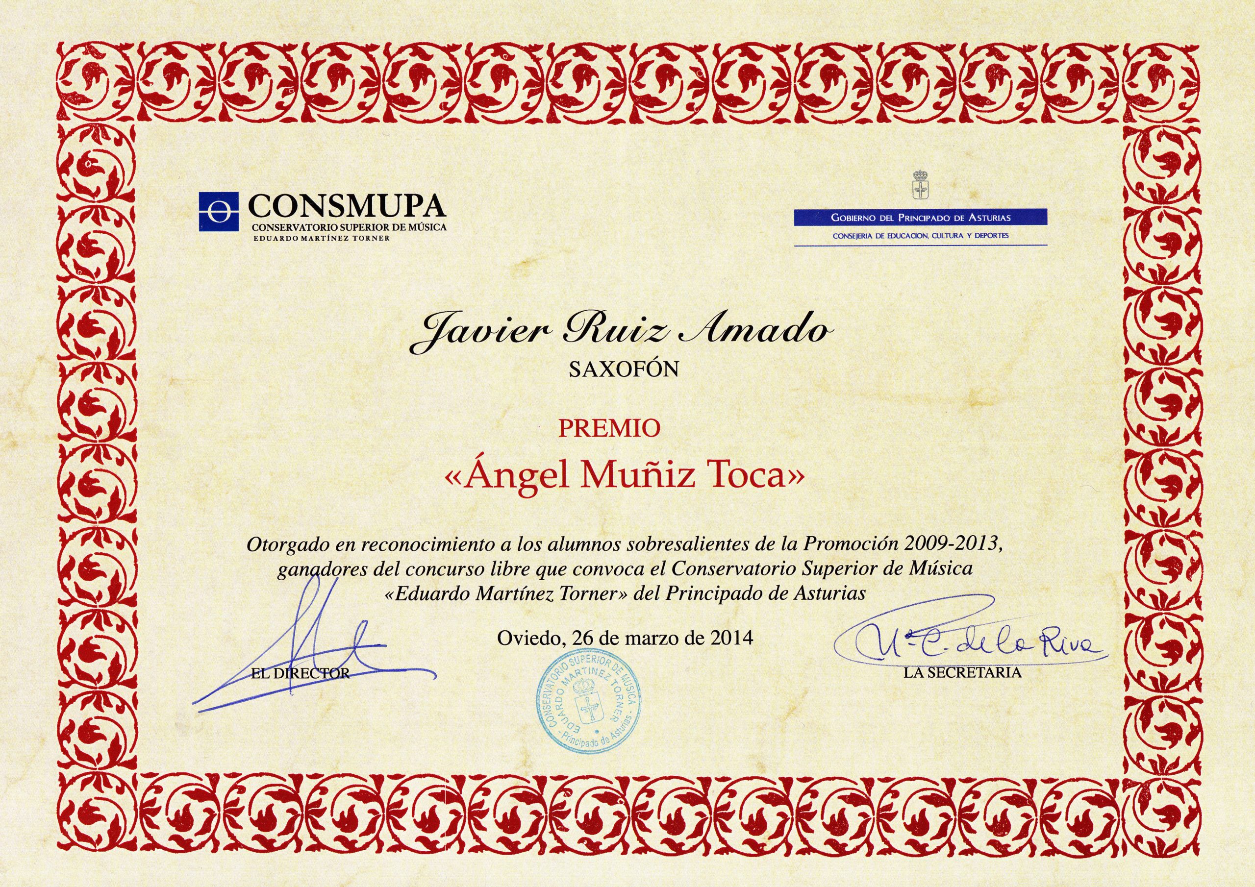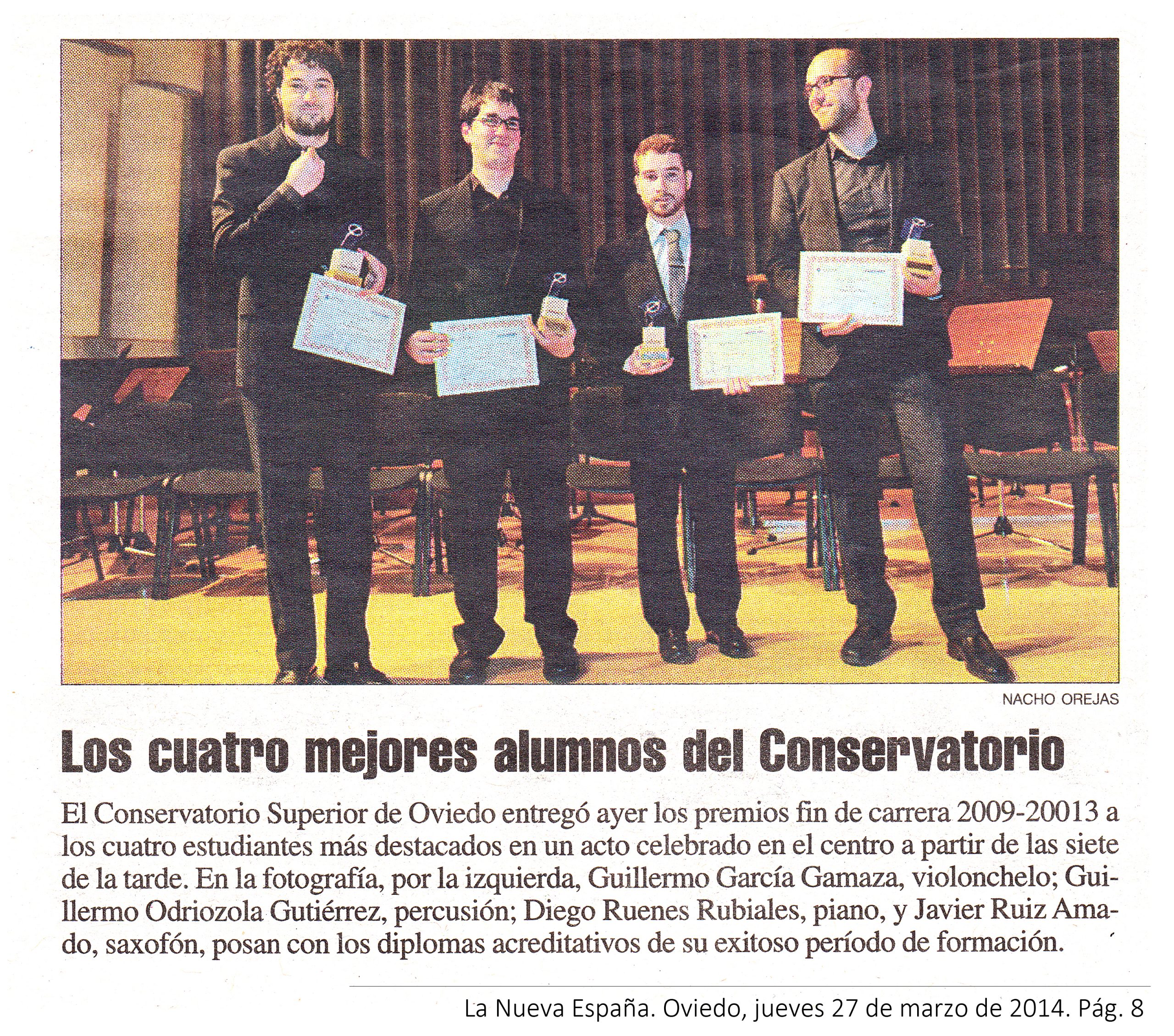 Posteriormente, recibe su formación musical de Grado Superior entre los conservatorios de San Sebastián (Musikene) y Oviedo (CONSMUPA), contando con las enseñanzas de profesores como Gabriel Valera, Fco. Javier Rodríguez, Tomás Jerez o Eric Devallon, entre otros. En 2013, termina el Grado Superior de Música en Oviedo consiguiendo el Premio de Fin de Carrera “Ángel Muñiz Toca”.