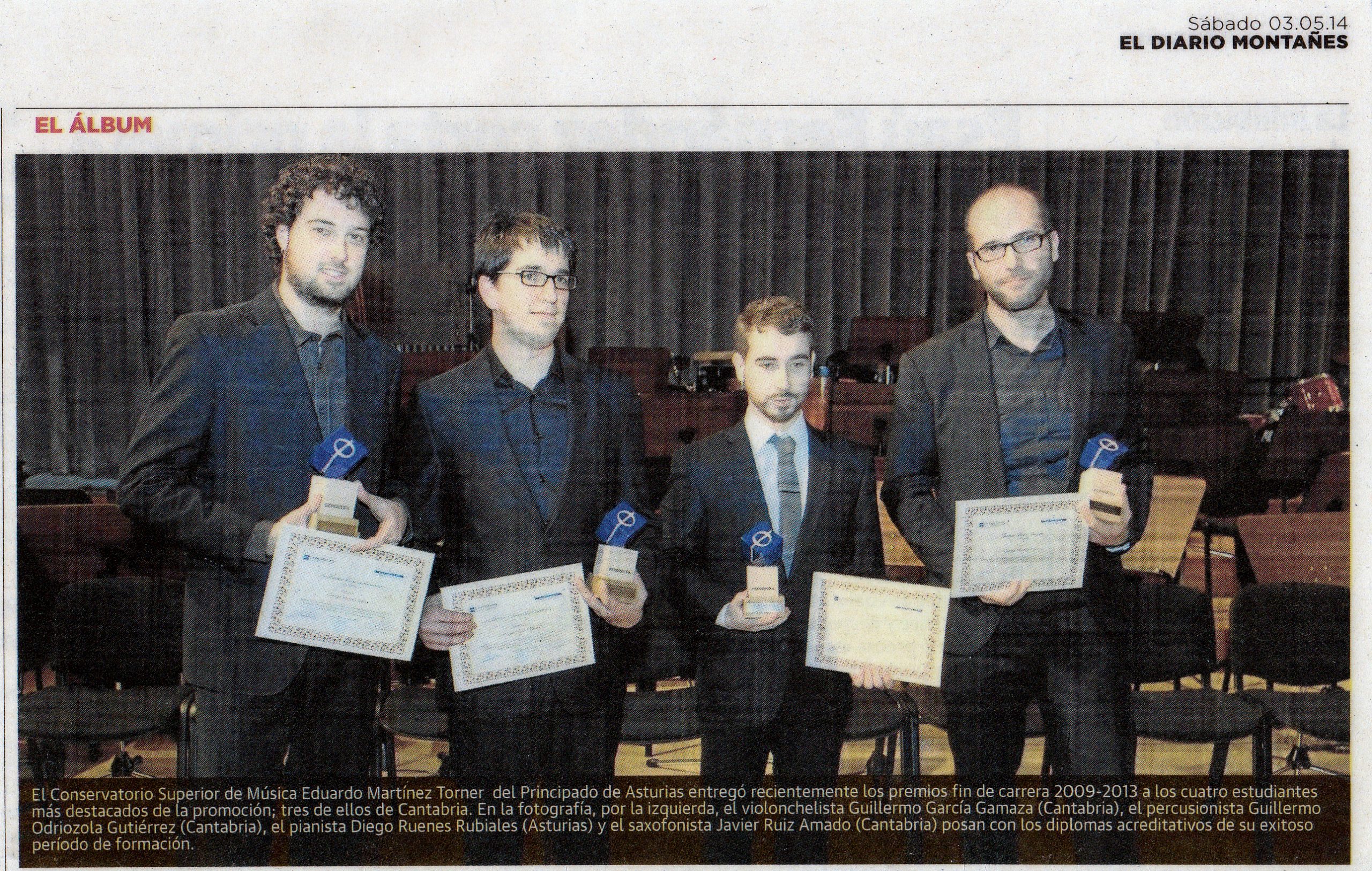 Comienza sus estudios de saxofón a los 9 años en el Conservatorio Municipal Ataúlfo Argenta de Santander, bajo la tutela de Guillermo Herrero Solano. Aquí, acaba el Grado Profesional de Música con las más altas calificaciones.